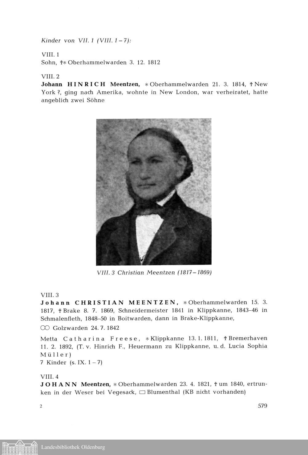 Stammliste des oldenburgischen Seefahrer- und Kaufmannsgeschlechts Meentzen. Von...
