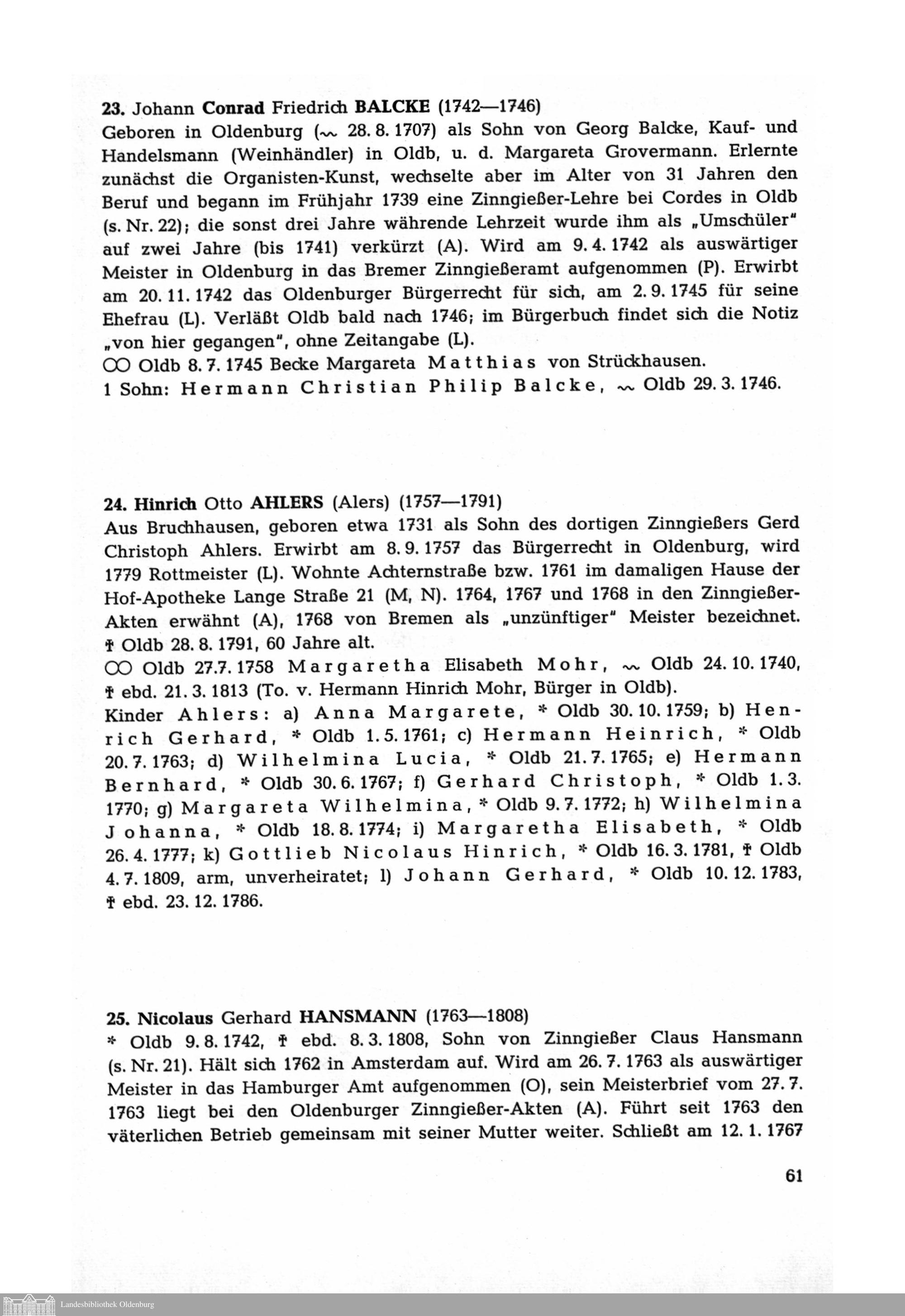 Die Zinngießer der Stadt Oldenburg. Von Wolfgang Büsing