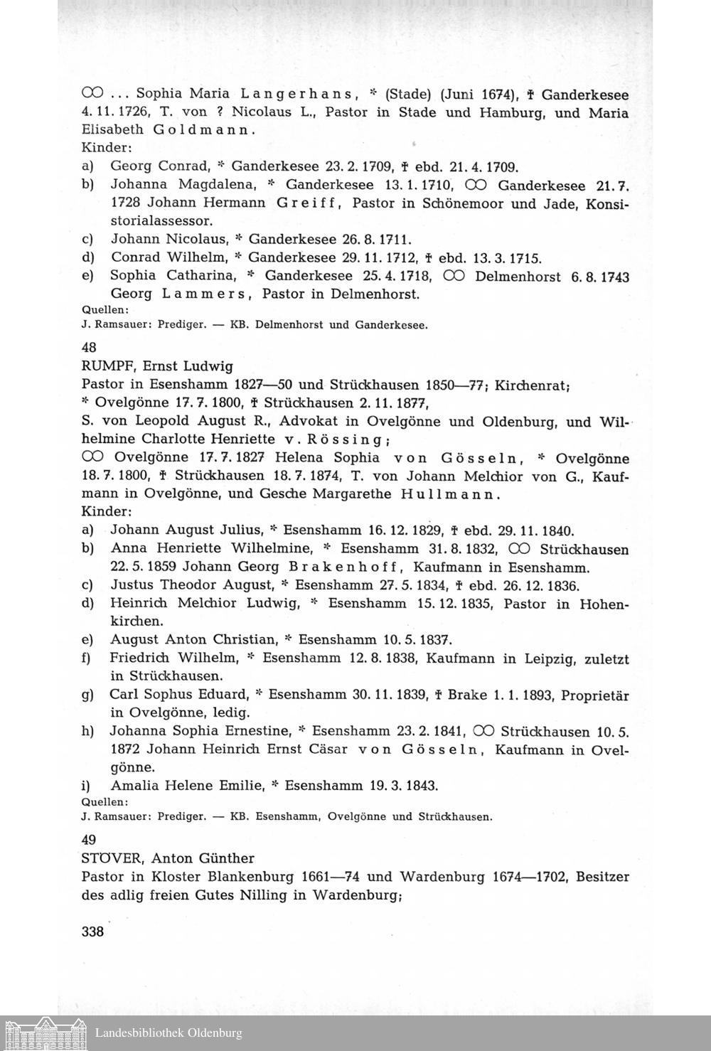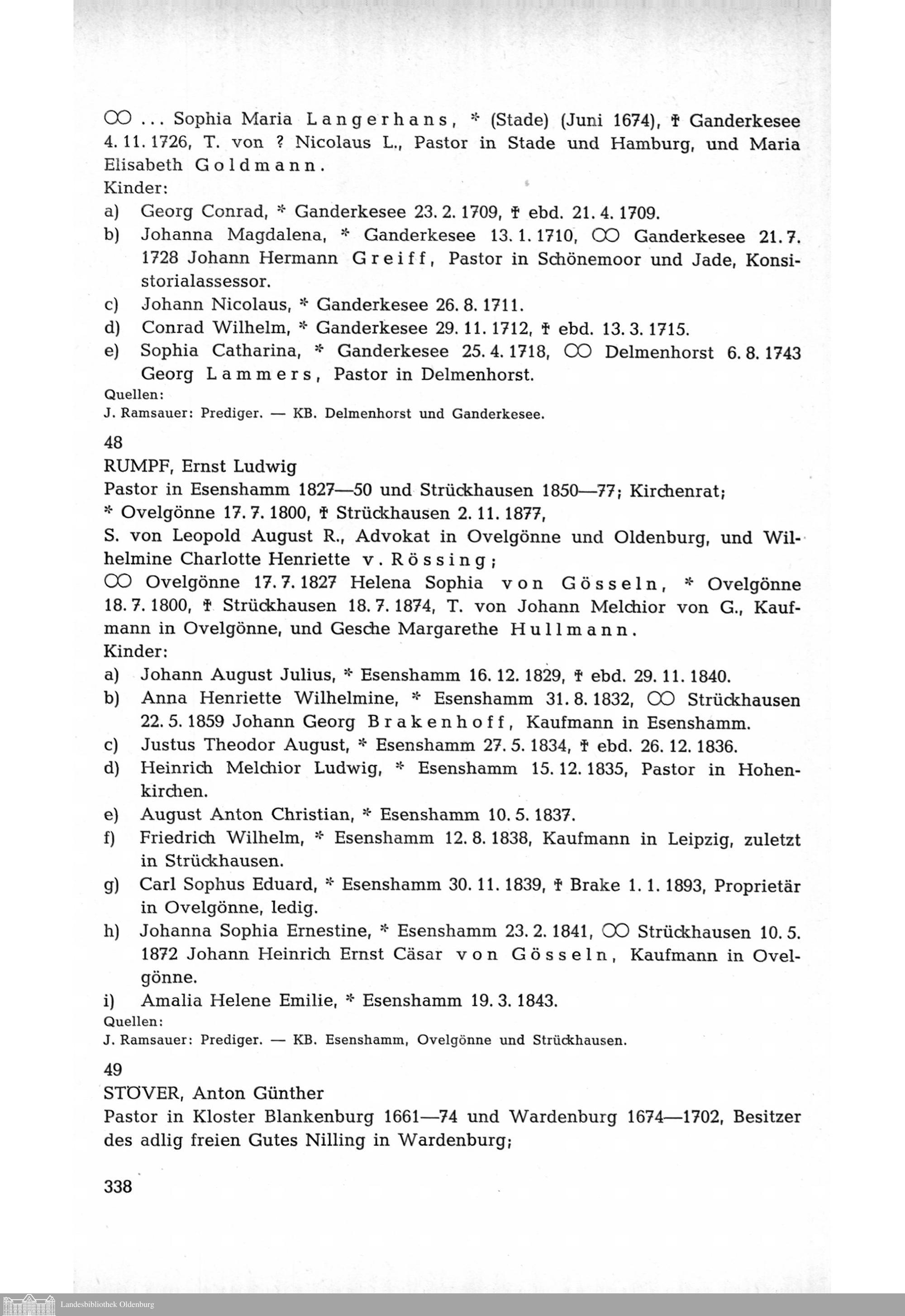 Oldenburgische Pastorengenealogie. Von Walter Schaub