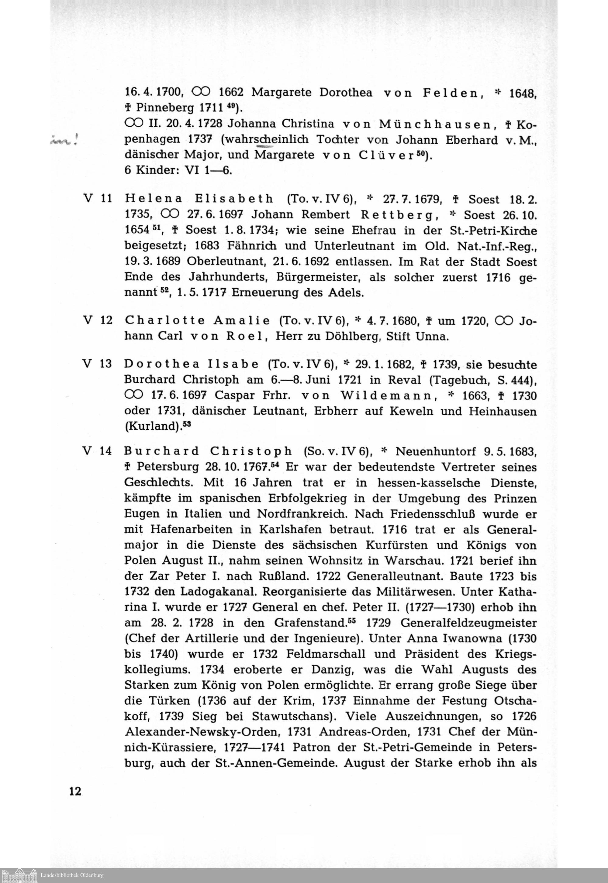 Genealogie der Familie des russischen Generalfeldmarschalls Burchard Christoph von...