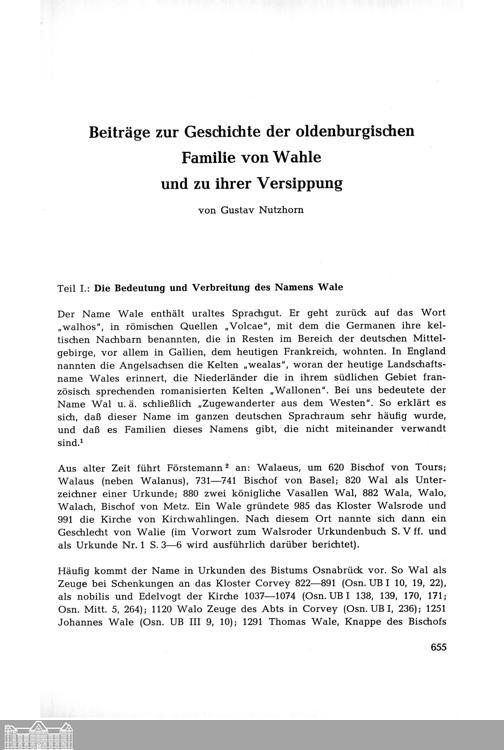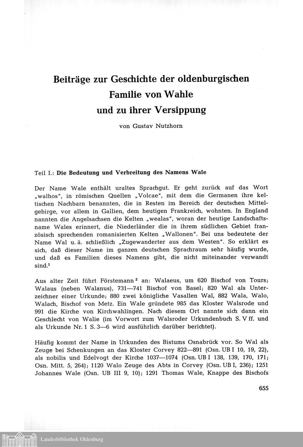 Beiträge zur Geschichte der oldenburgischen Familie von Wahle und zu ihrer Versippung....