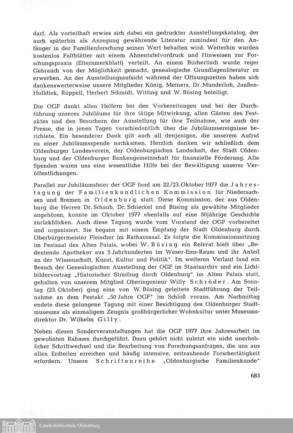 Jahresbericht der Oldenburgischen Gesellschaft für Familienkunde für 1977