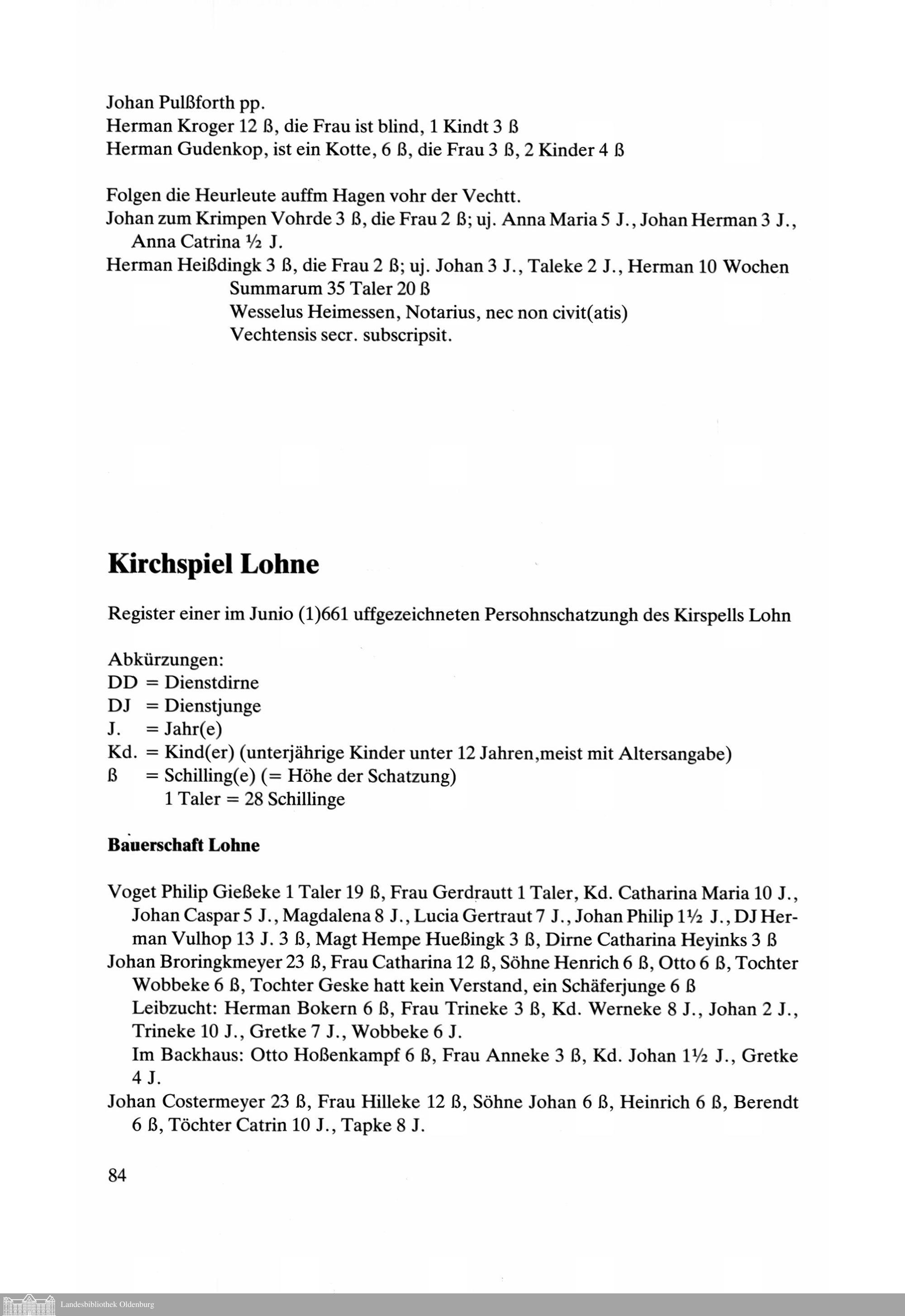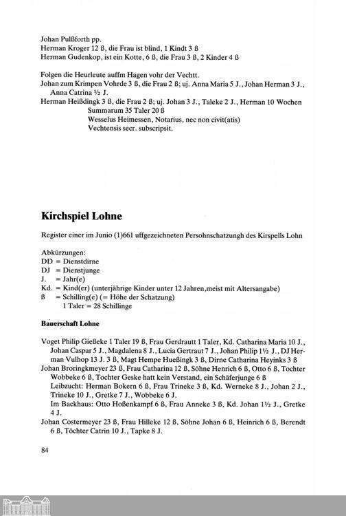 Die Personenschatzungsregister der Kirchspiele Vechta, Lohne und Langförden von 1661....