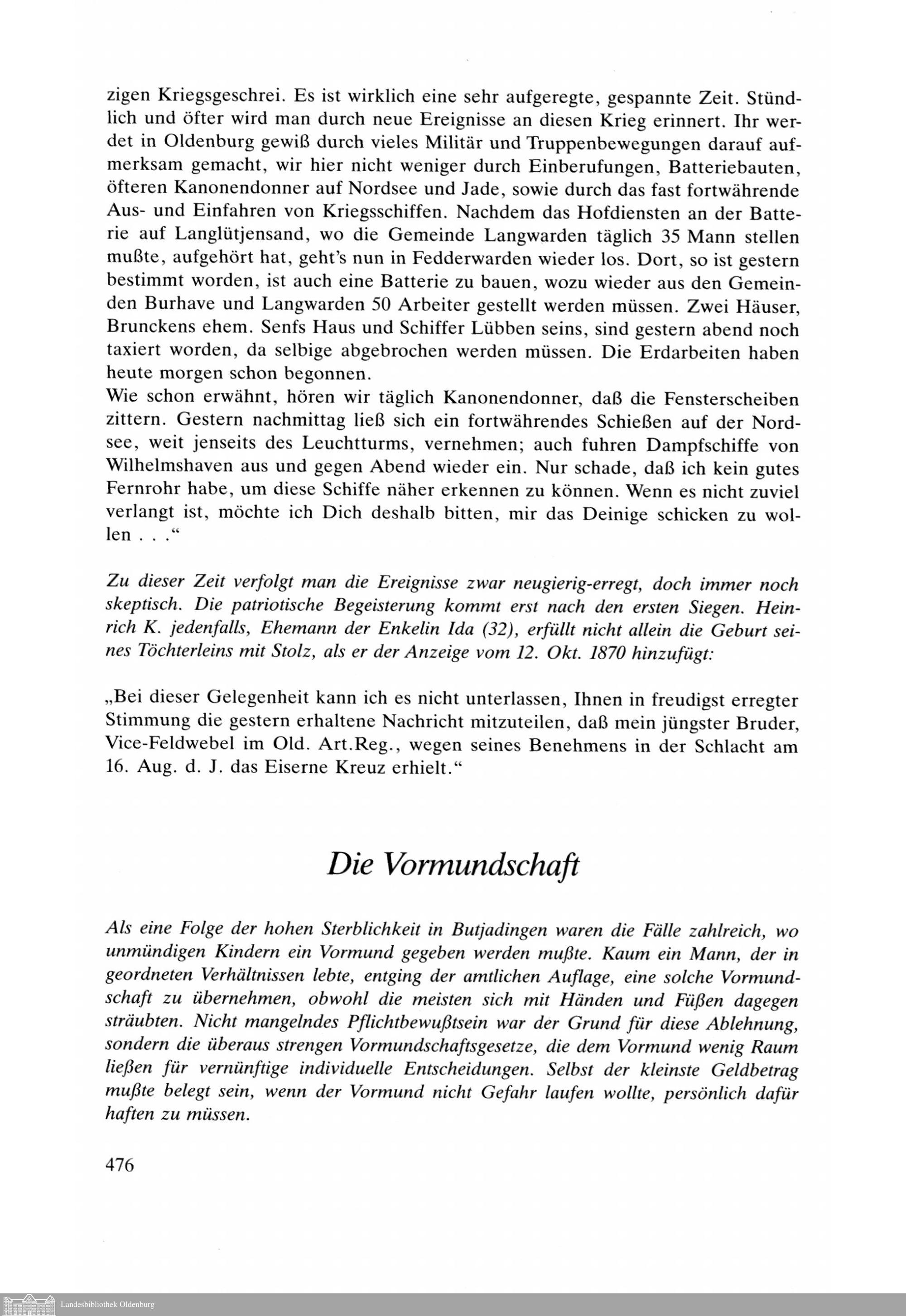 Grüße aus dem vorigen Jahrhundert. Briefe und Aufzeichnungen aus einer Butjadinger...