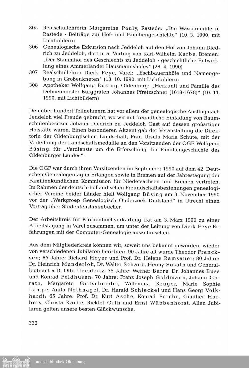 Jahresbericht der Oldenburgischen Gesellschaft für Familienkunde für 1990