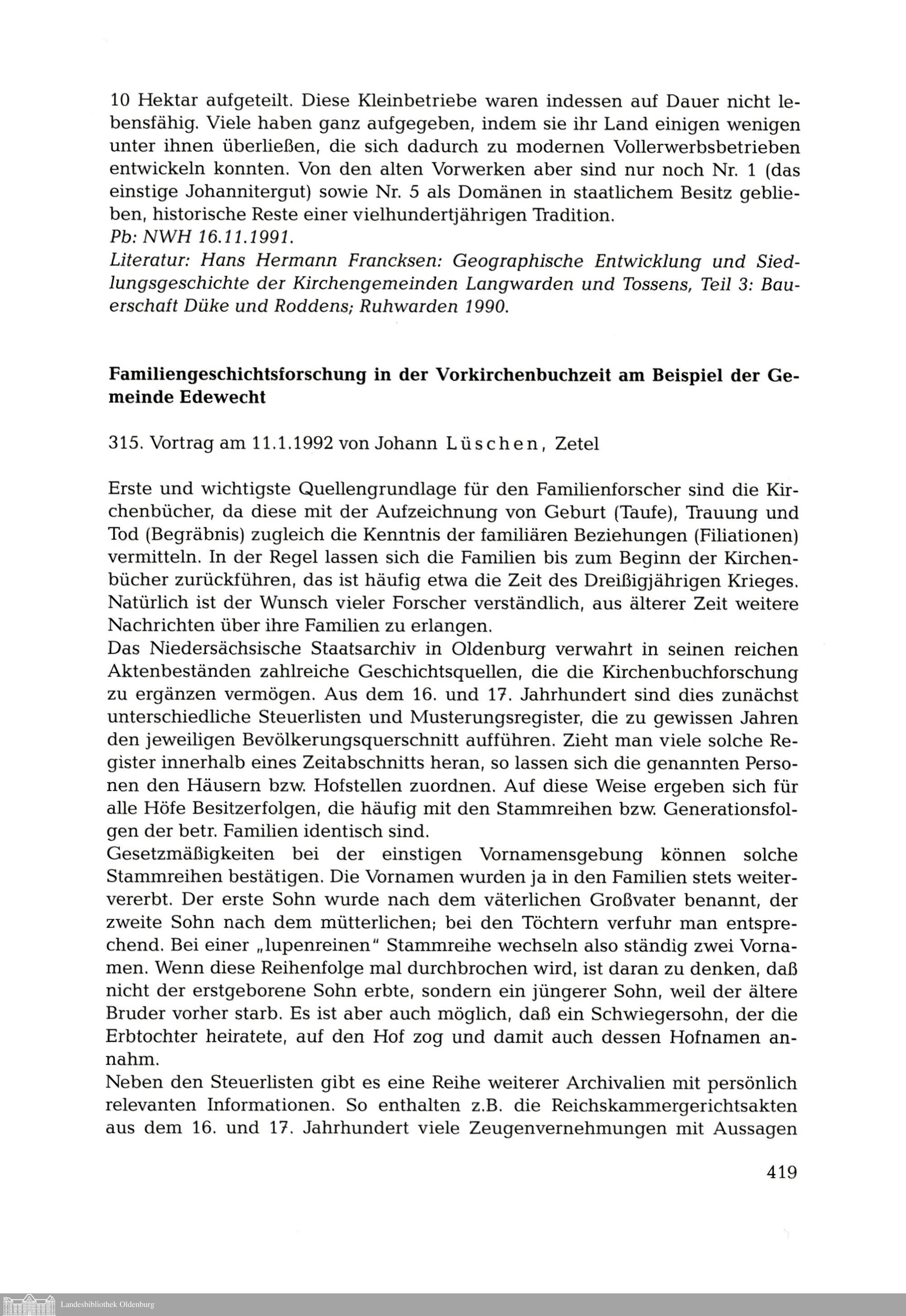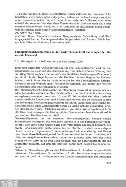 Die Vorträge der Oldenburgischen Gesellschaft für Familienkunde 1990-1996. Von Wolfgang...