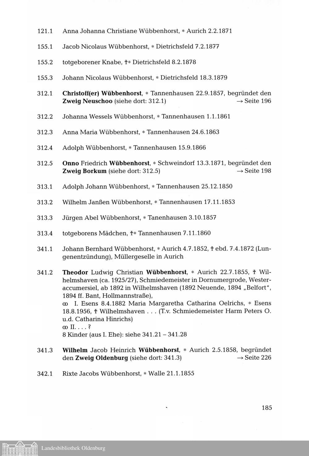 Das oldenburgische Geschlecht Wübbenhorst, 4. Teil. Der ostfriesische Stamm Wübbenhorst....