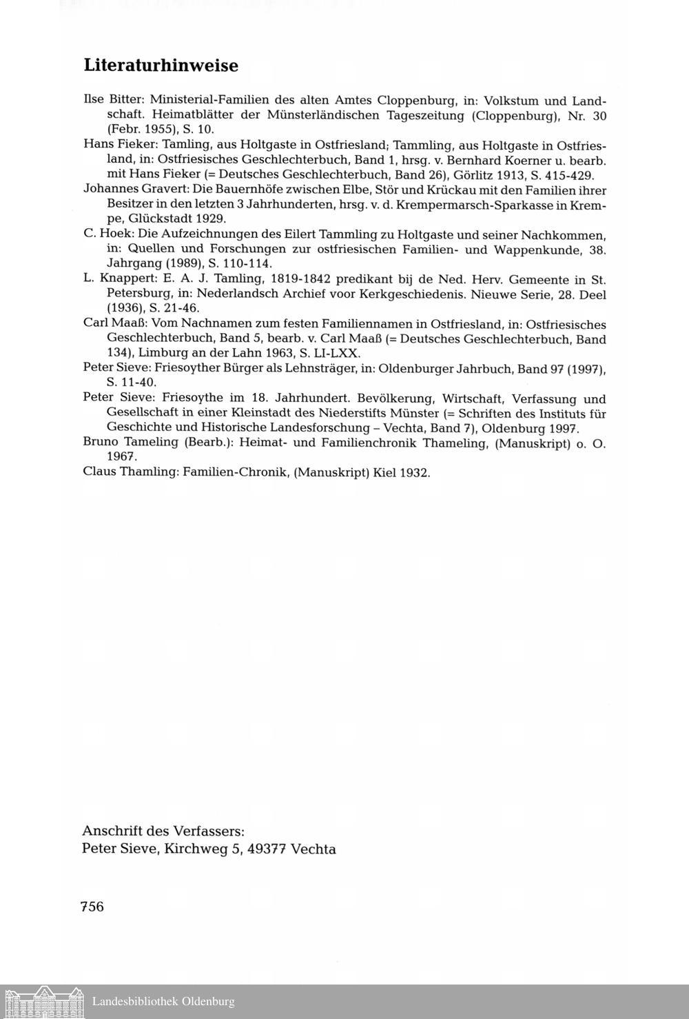 Die Familien Tameling aus Friesoythe. Peter Sieve