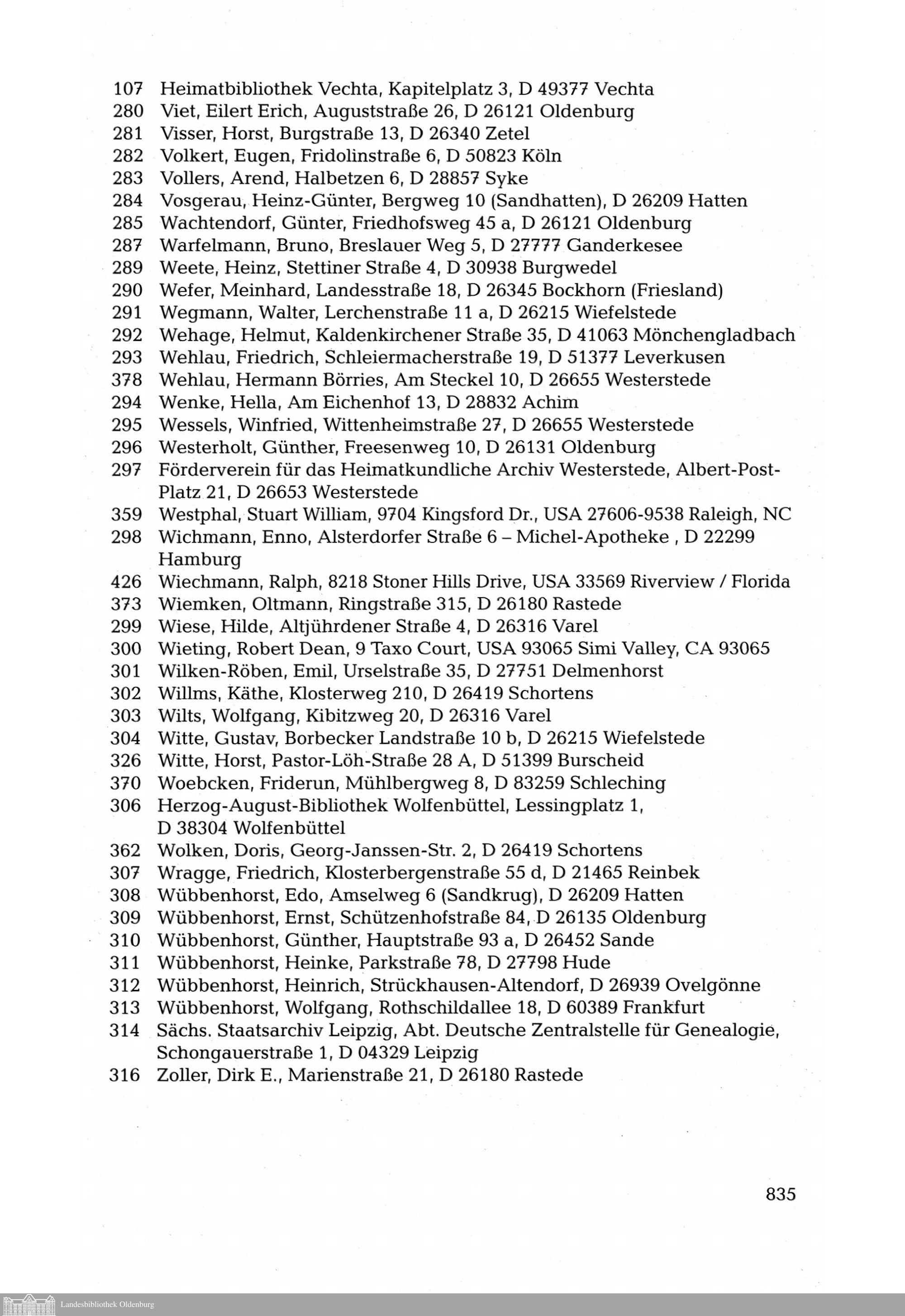 Mitgliederverzeichnis der Oldenburgischen Gesellschaft für Familienkunde (August...