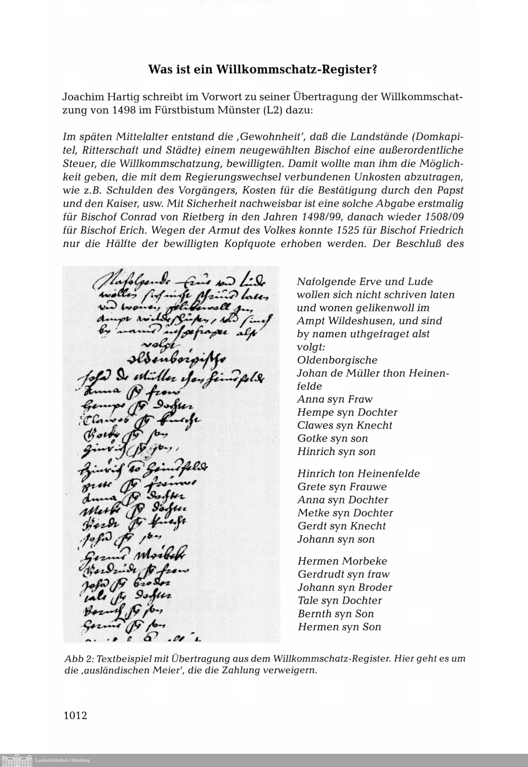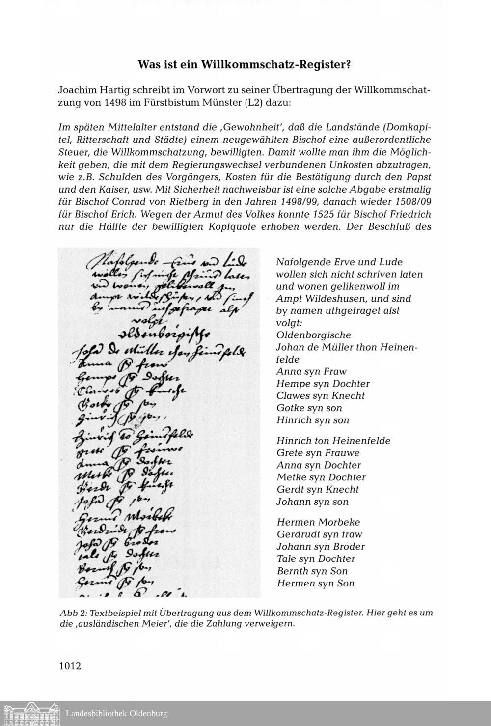 Das Willkommschatz-Register des Amtes Wildeshausen von 1568. Bearbeitet von Heinz-Günter...