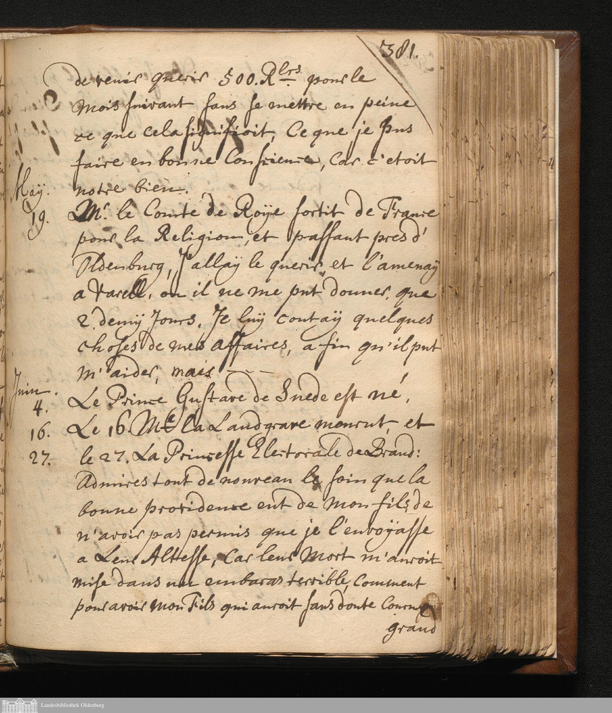 Vie de La Princesse De La trimoulle, Comtesse D' Aldenburg écrite de sa propre main, en forme D' instruction a son Digne fils : Je viens de Le faire rélier Le 21 Mar 1741 : WMLDHHCD D'Aldenburg