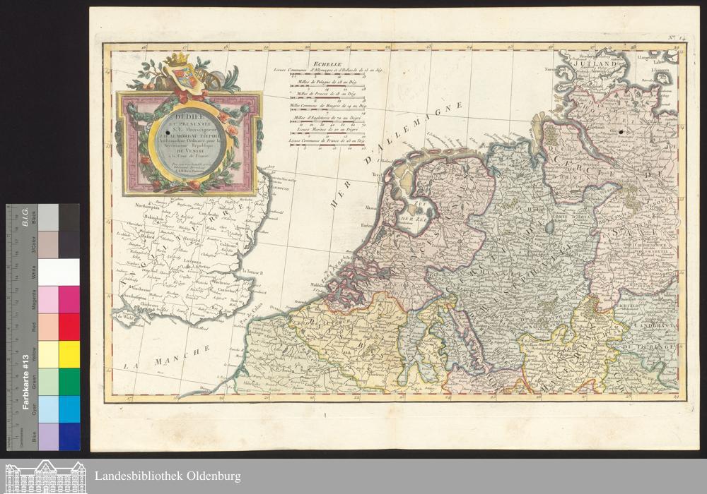 [Karte des Nordwesten Deutschlands und der umliegenden Regionen] : Dédiée Et Présentée à S. E. Monseigneur I. D. Almoreau Tiepolo Ambassadeur Ordinaire pour la Sérénissime République De Venise à la Cour de France / Par son très humble et très Obéissant Serviteur J.A.B. Rizzi Zannoni