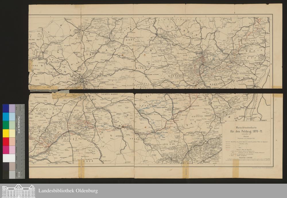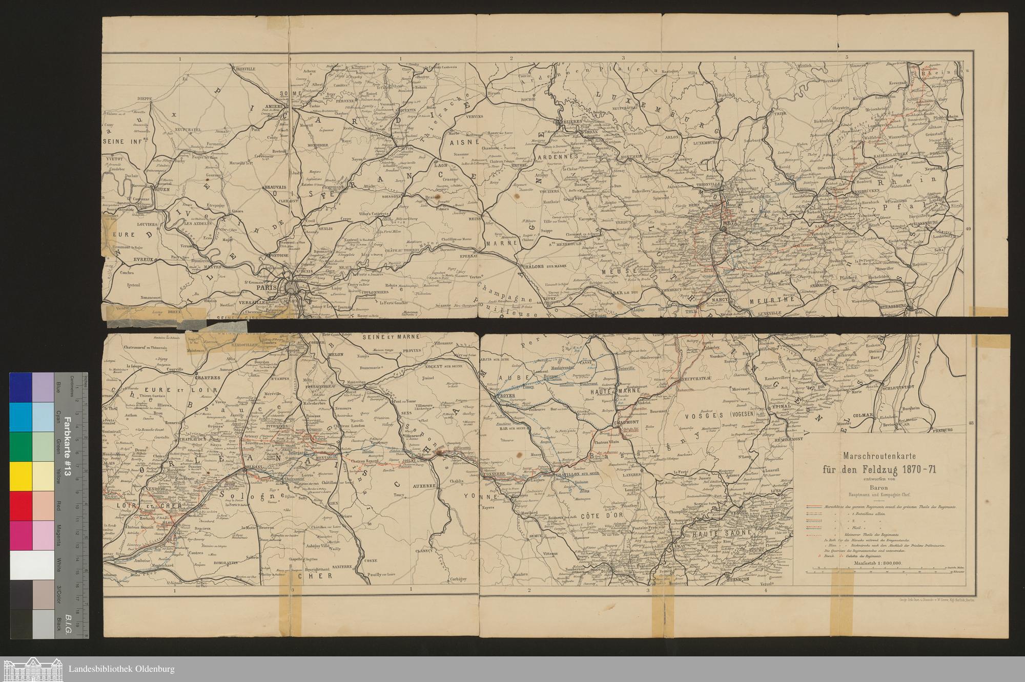 Marschroutenkarte für den Feldzug 1870-71 / entworfen von Baron Hauptmann und Kompagnie-Chef
