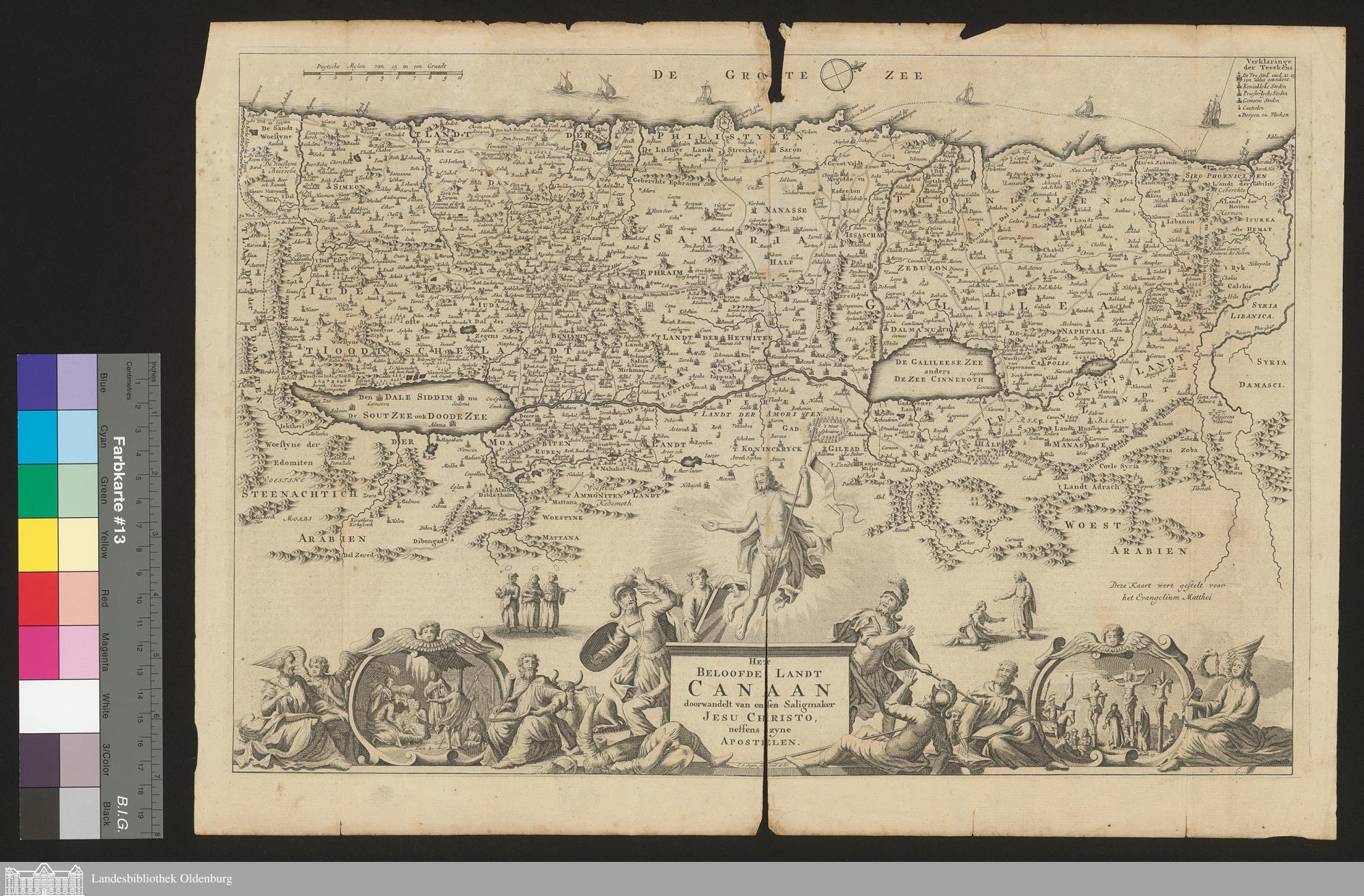 Het Beloofde Landt Canaan : doorwandelt van onsen Saligmaker Jesu Christo neffens zyne Apostelen / J. v. Jagen sculpsit, et dir.