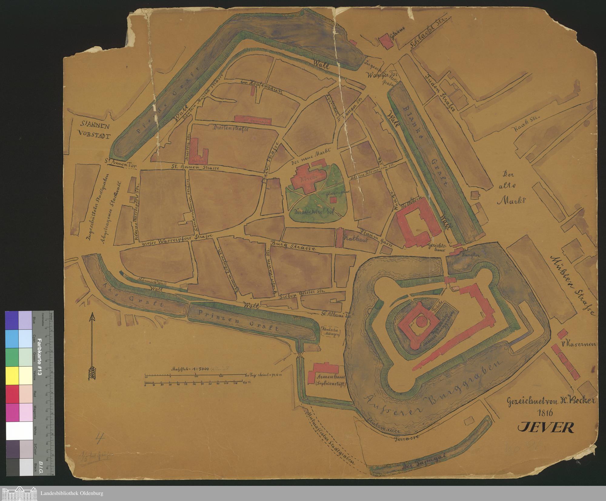[Karte von der Innenstadt Jever] / gezeichnet von H. Becker