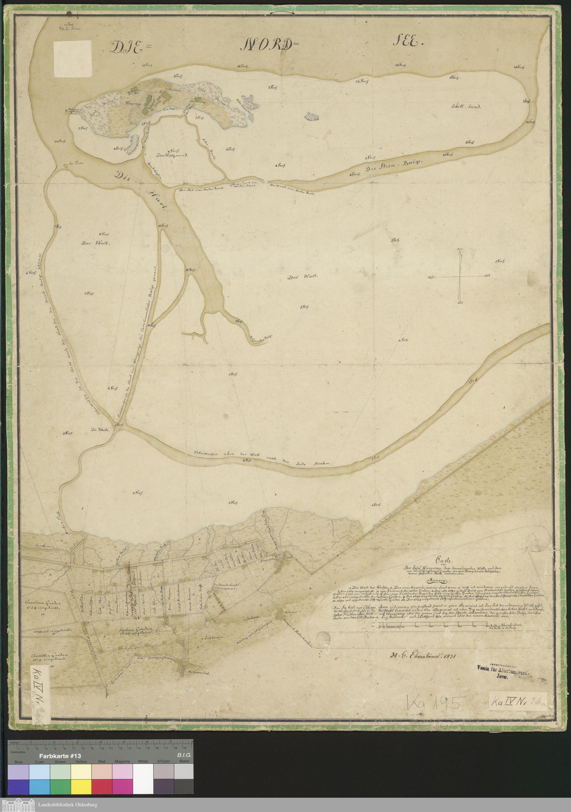 Carte von Der Insel Wangeroege, dem davorliegenden Watte und dem von der Ostfriesischen Gräntze bis zum Dengsthäuser Holtzschlage, daran stossenden Theile Jeverlandes / H. G. Ehrentraut