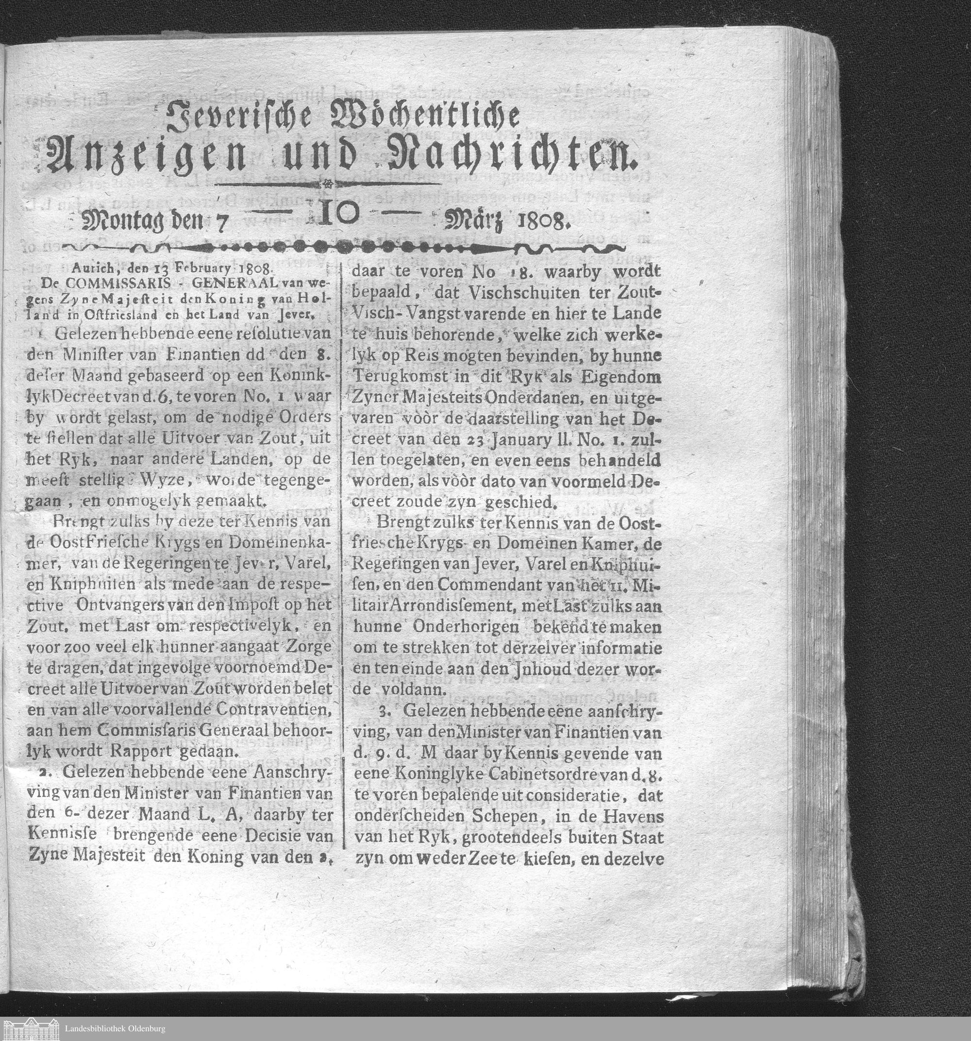 Jeverische wöchentliche Anzeigen und Nachrichten. 1791-1811