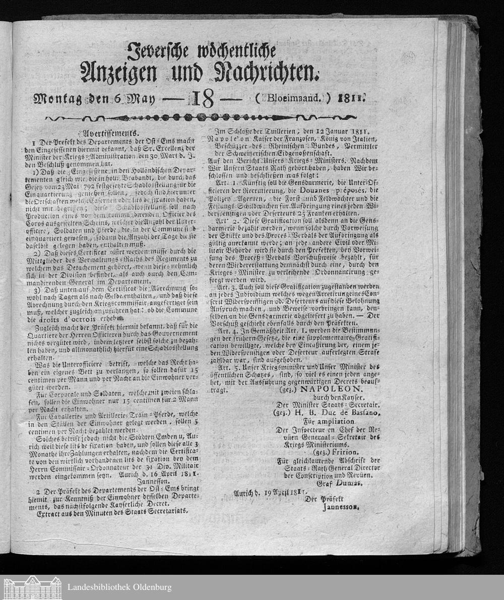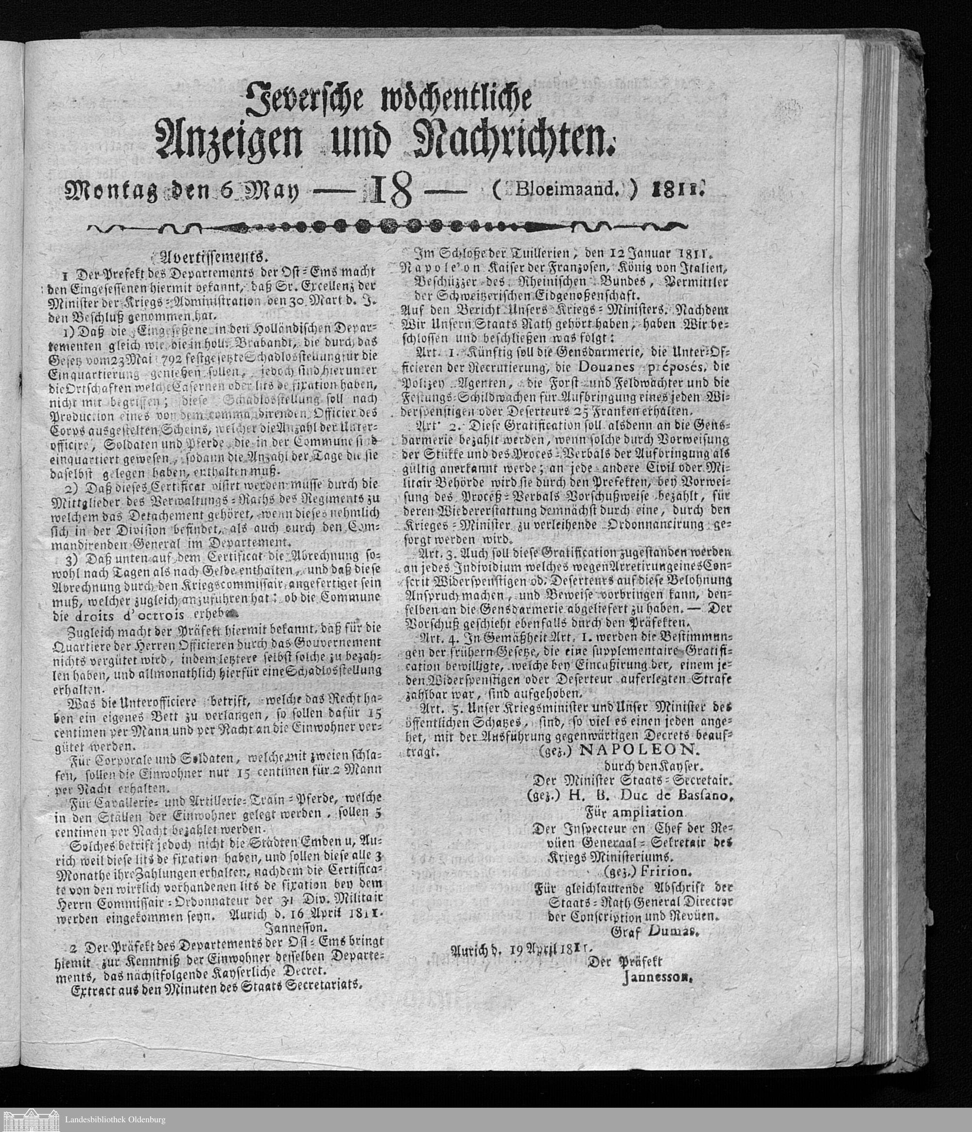 Jeverische wöchentliche Anzeigen und Nachrichten. 1791-1811