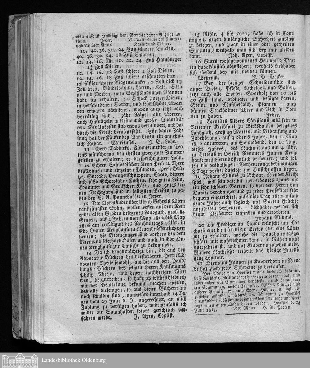 Jeverische wöchentliche Anzeigen und Nachrichten. 1791-1811