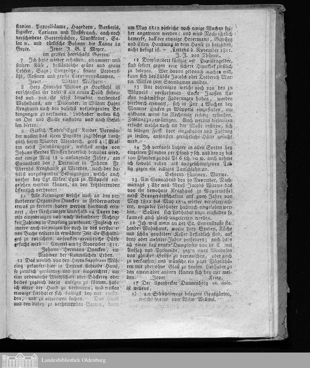Jeverische wöchentliche Anzeigen und Nachrichten. 1791-1811