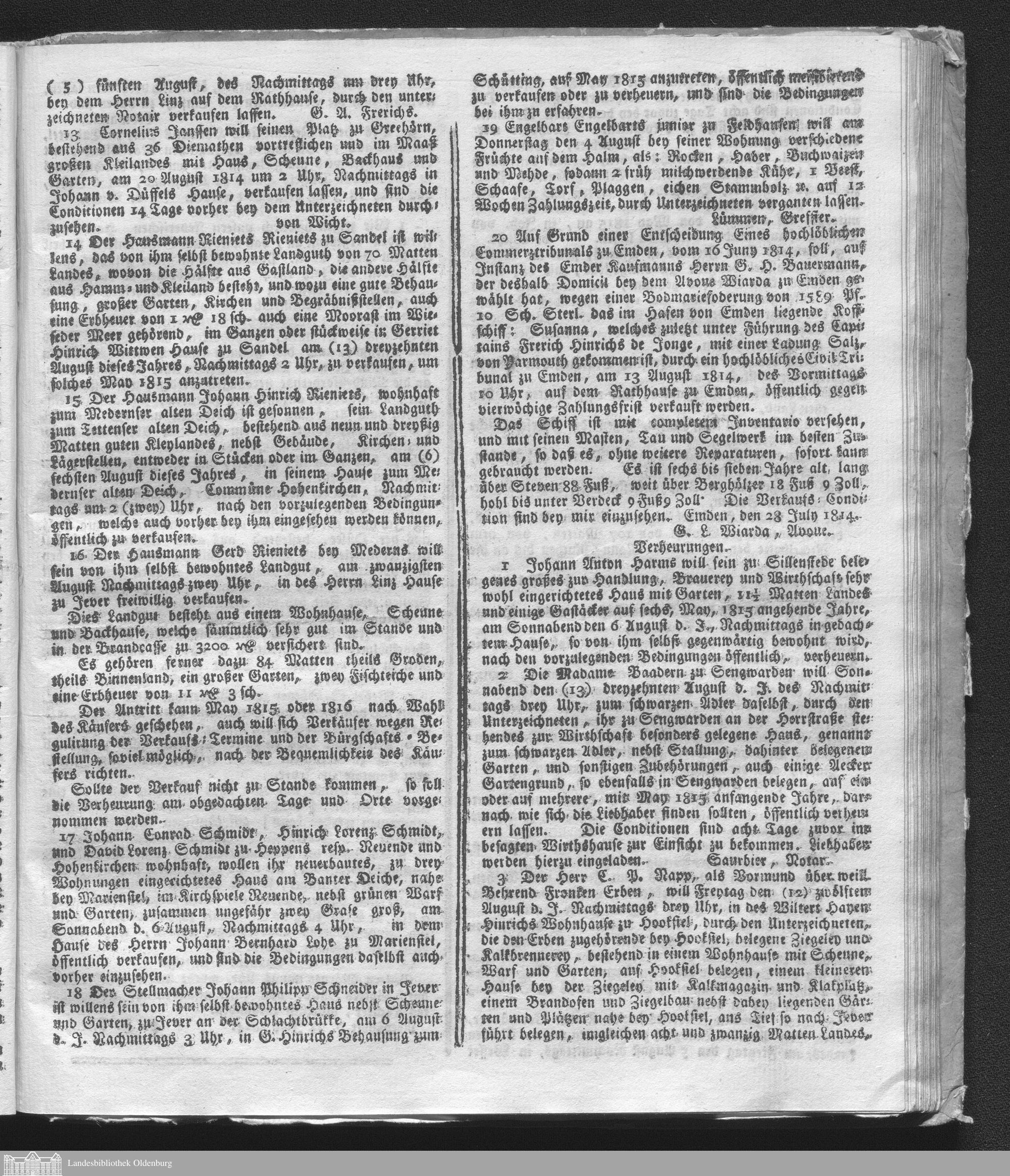 Wöchentliche Anzeigen und Nachrichten von Jever. 1814-1816