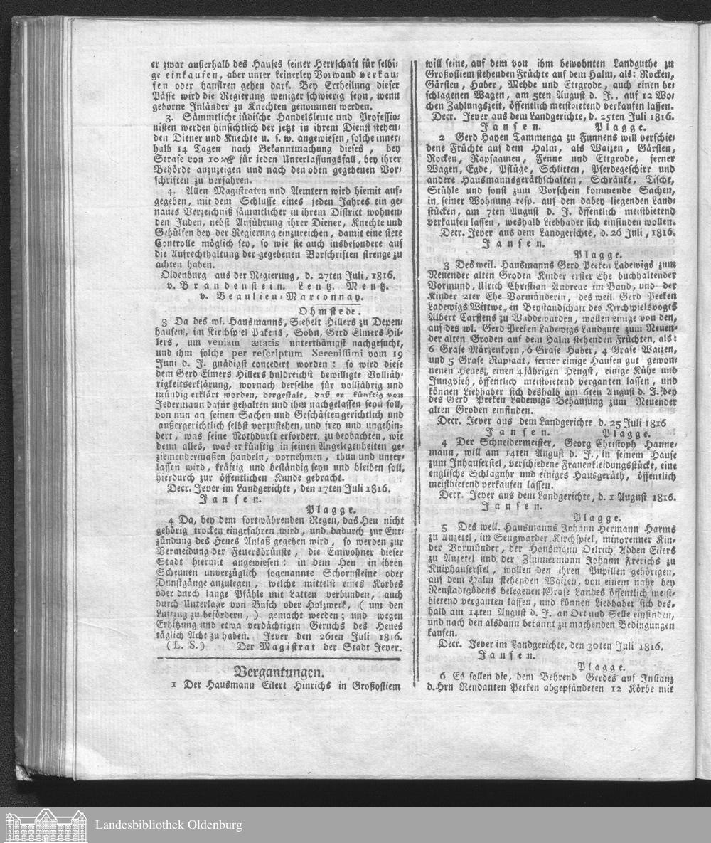Wöchentliche Anzeigen und Nachrichten von Jever. 1814-1816