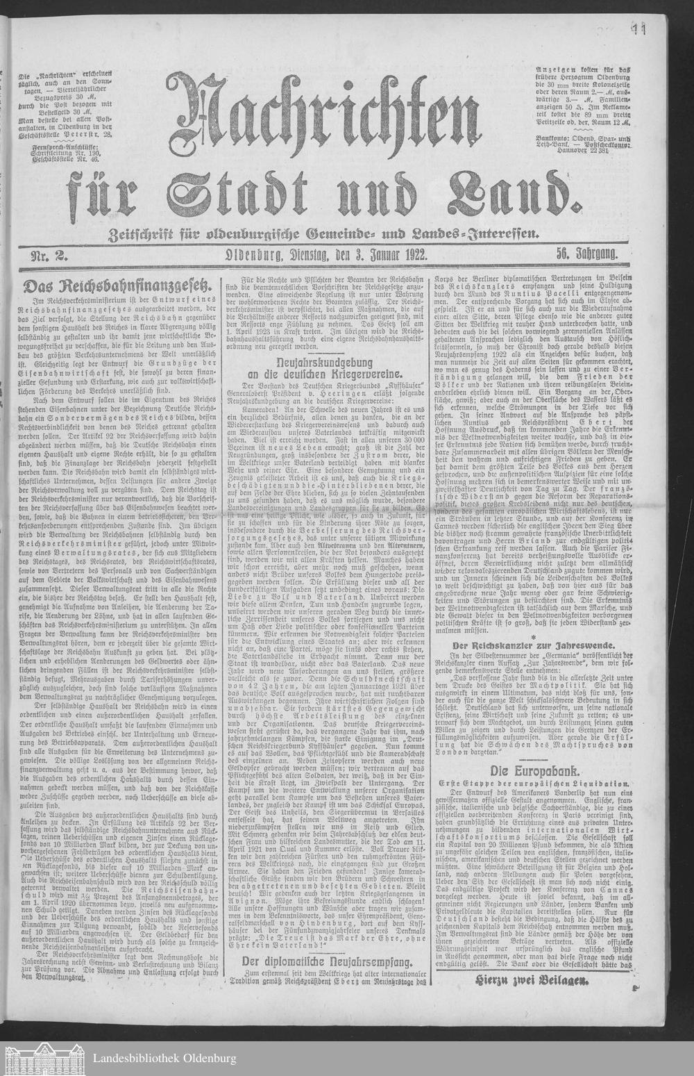 Nachrichten für Stadt und Land. 1866-1938
