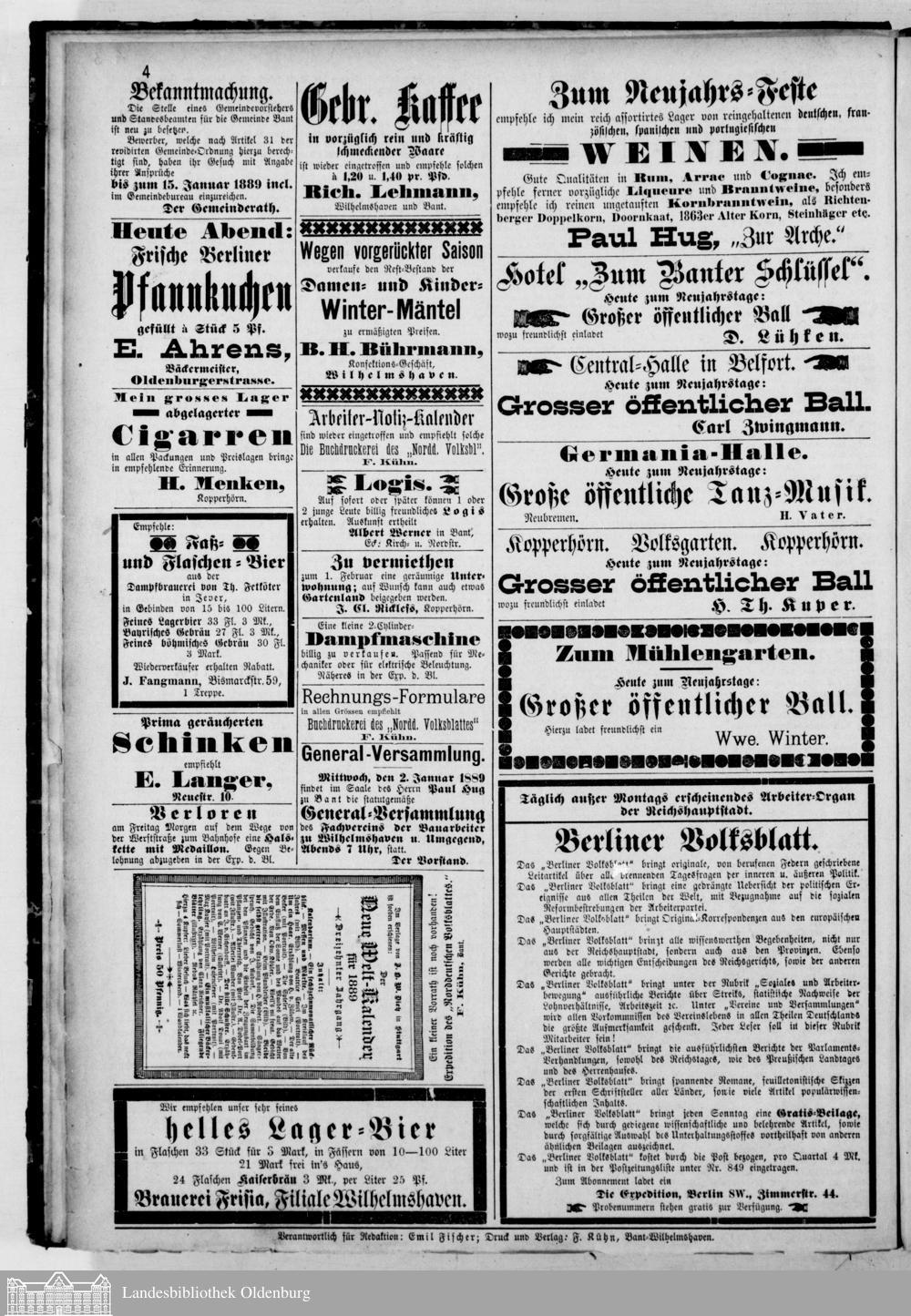 Norddeutsches Volksblatt. 1887-1918