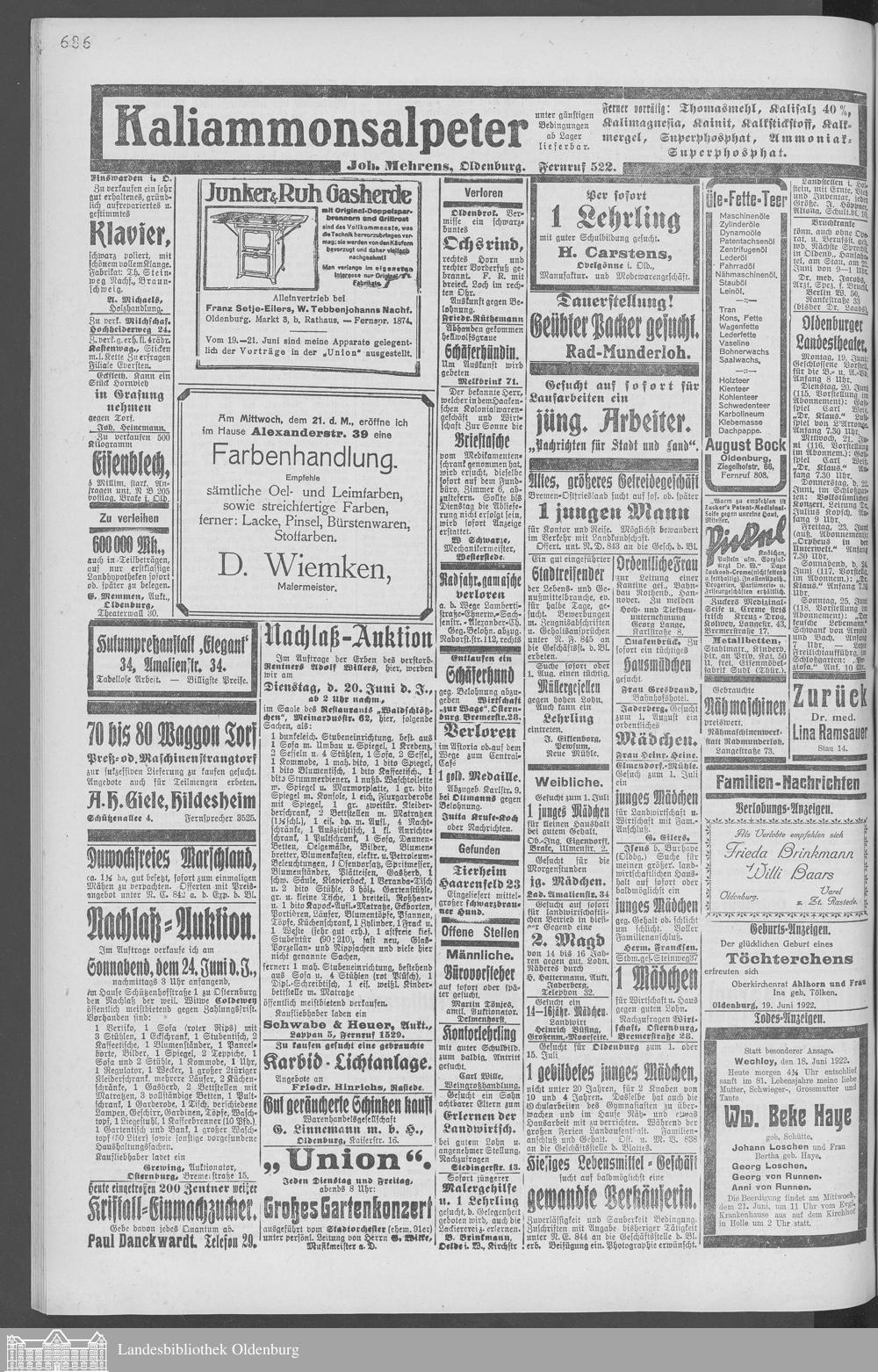 Nachrichten für Stadt und Land. 1866-1938