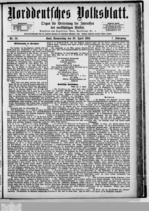 Norddeutsches Volksblatt. 1887-1918