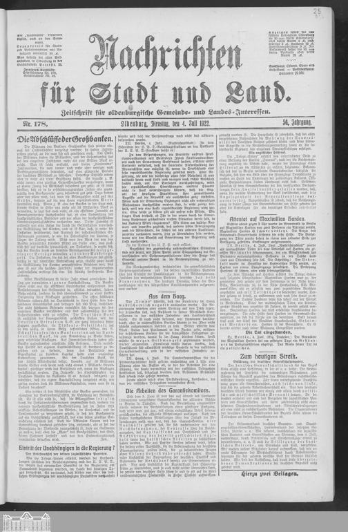 Nachrichten für Stadt und Land. 1866-1938