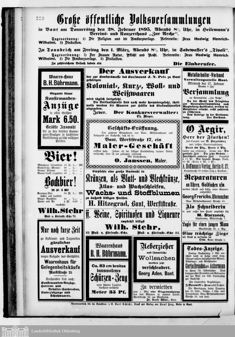 Norddeutsches Volksblatt. 1887-1918