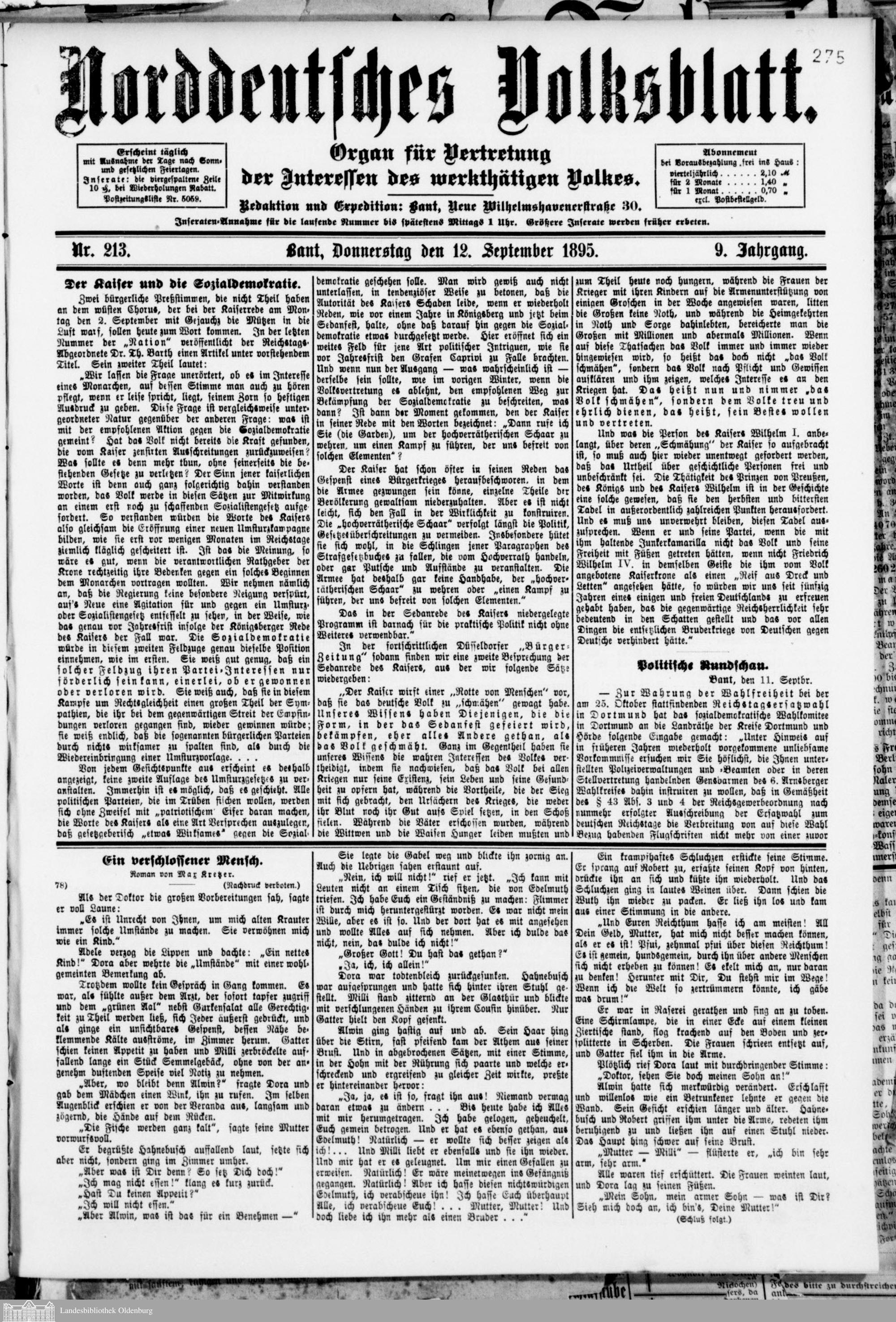 Norddeutsches Volksblatt. 1887-1918