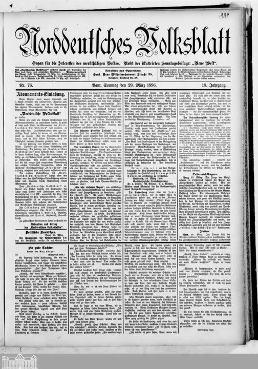 Norddeutsches Volksblatt. 1887-1918