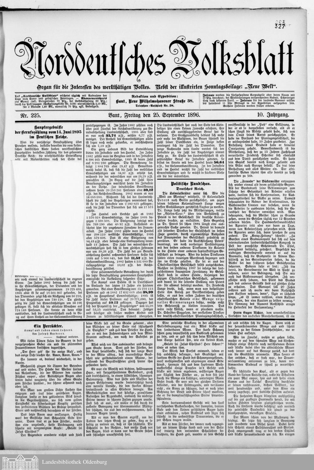 Norddeutsches Volksblatt. 1887-1918
