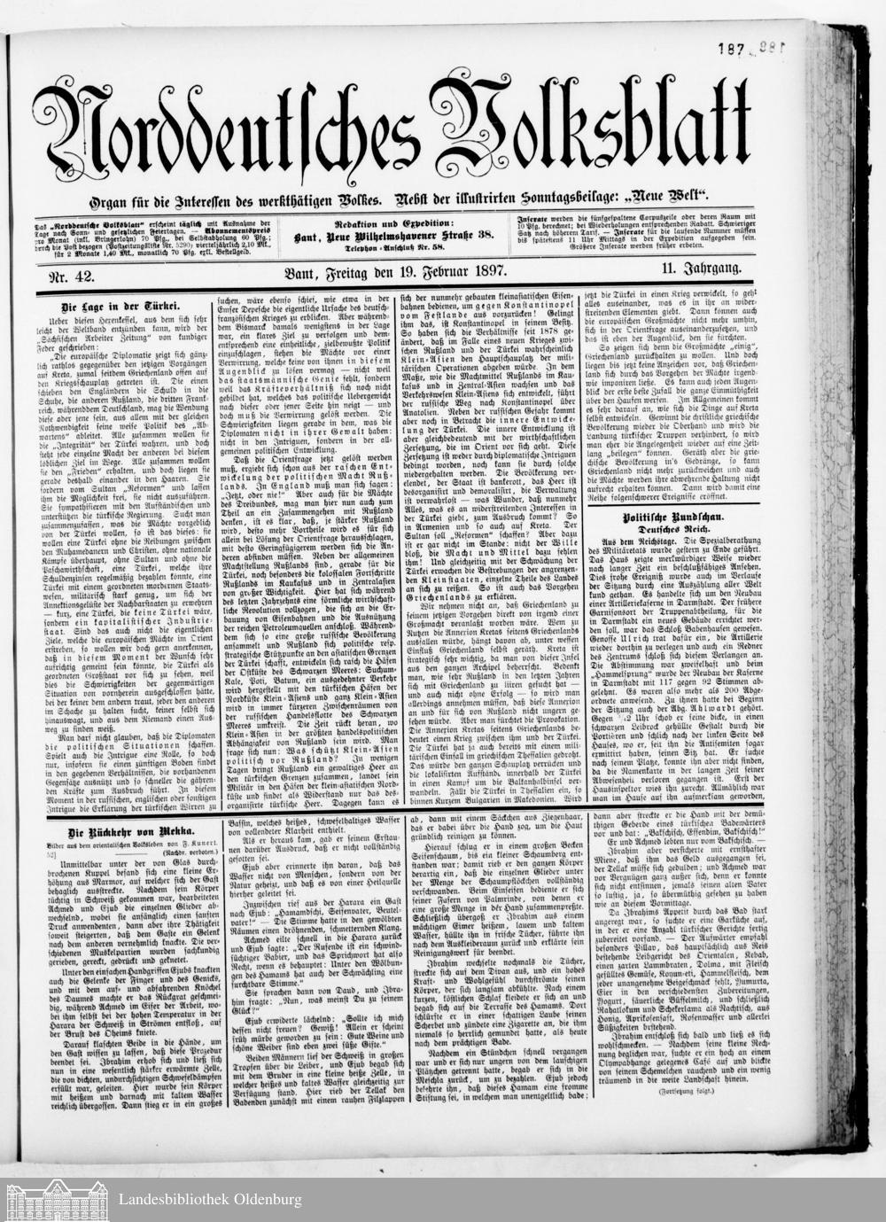 Norddeutsches Volksblatt. 1887-1918