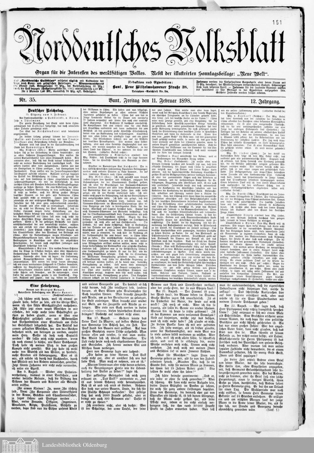 Norddeutsches Volksblatt. 1887-1918