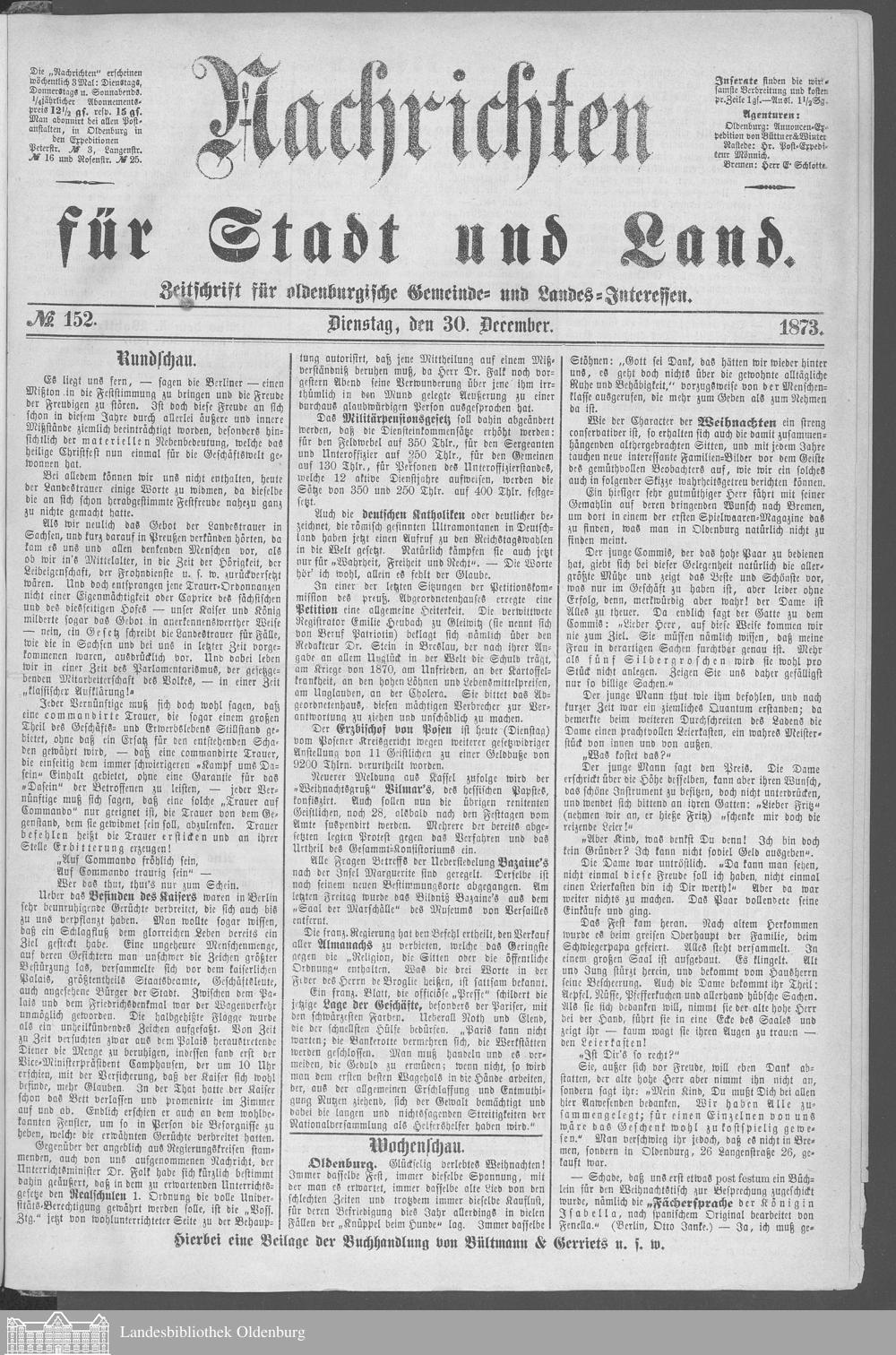 Nachrichten für Stadt und Land. 1866-1938