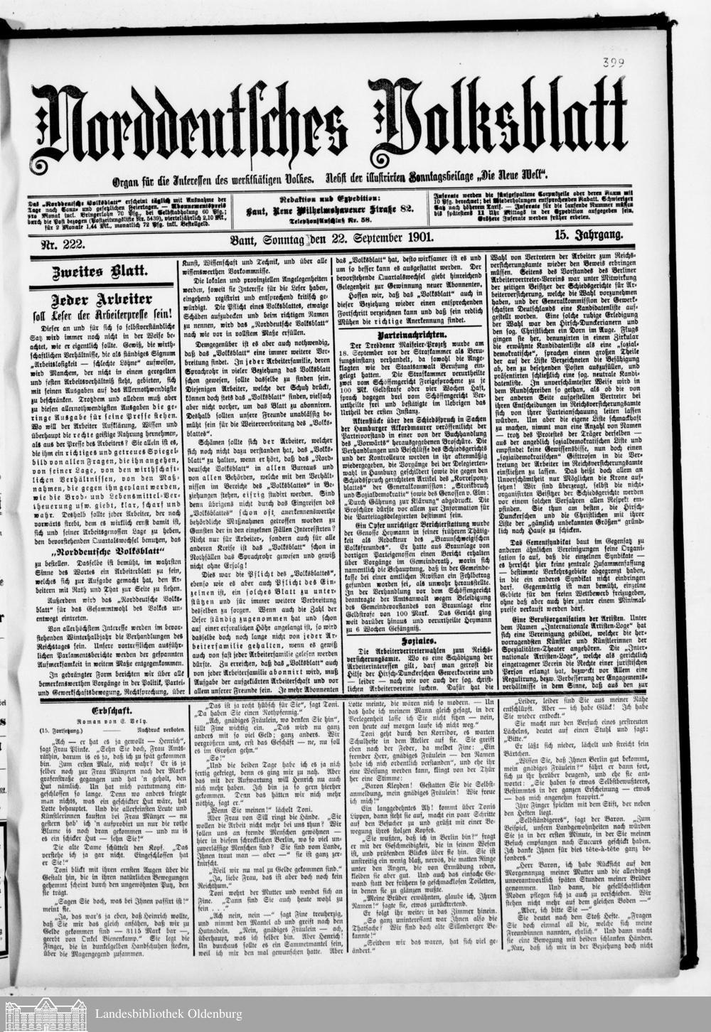 Norddeutsches Volksblatt. 1887-1918