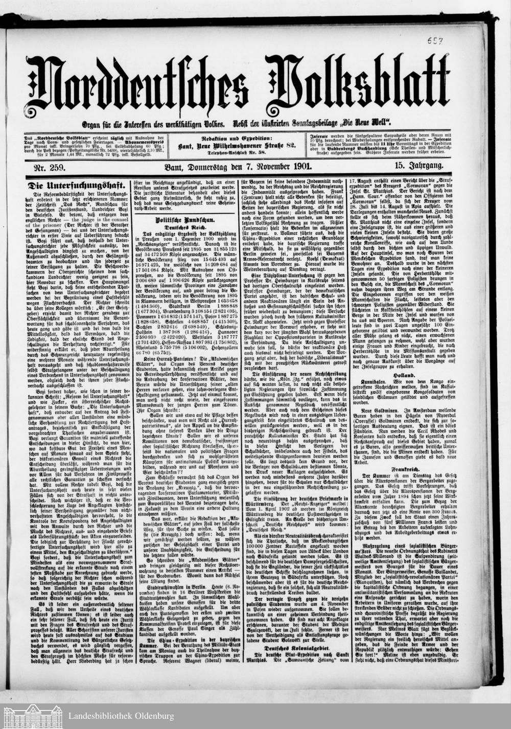 Norddeutsches Volksblatt. 1887-1918
