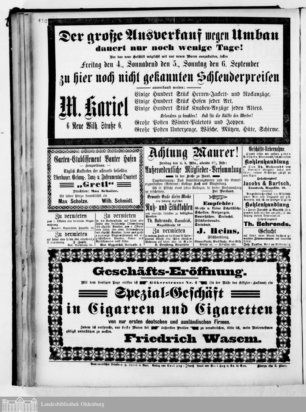 Norddeutsches Volksblatt. 1887-1918
