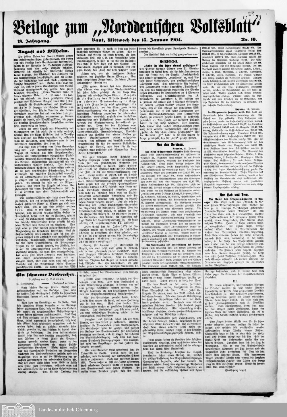 Norddeutsches Volksblatt. 1887-1918