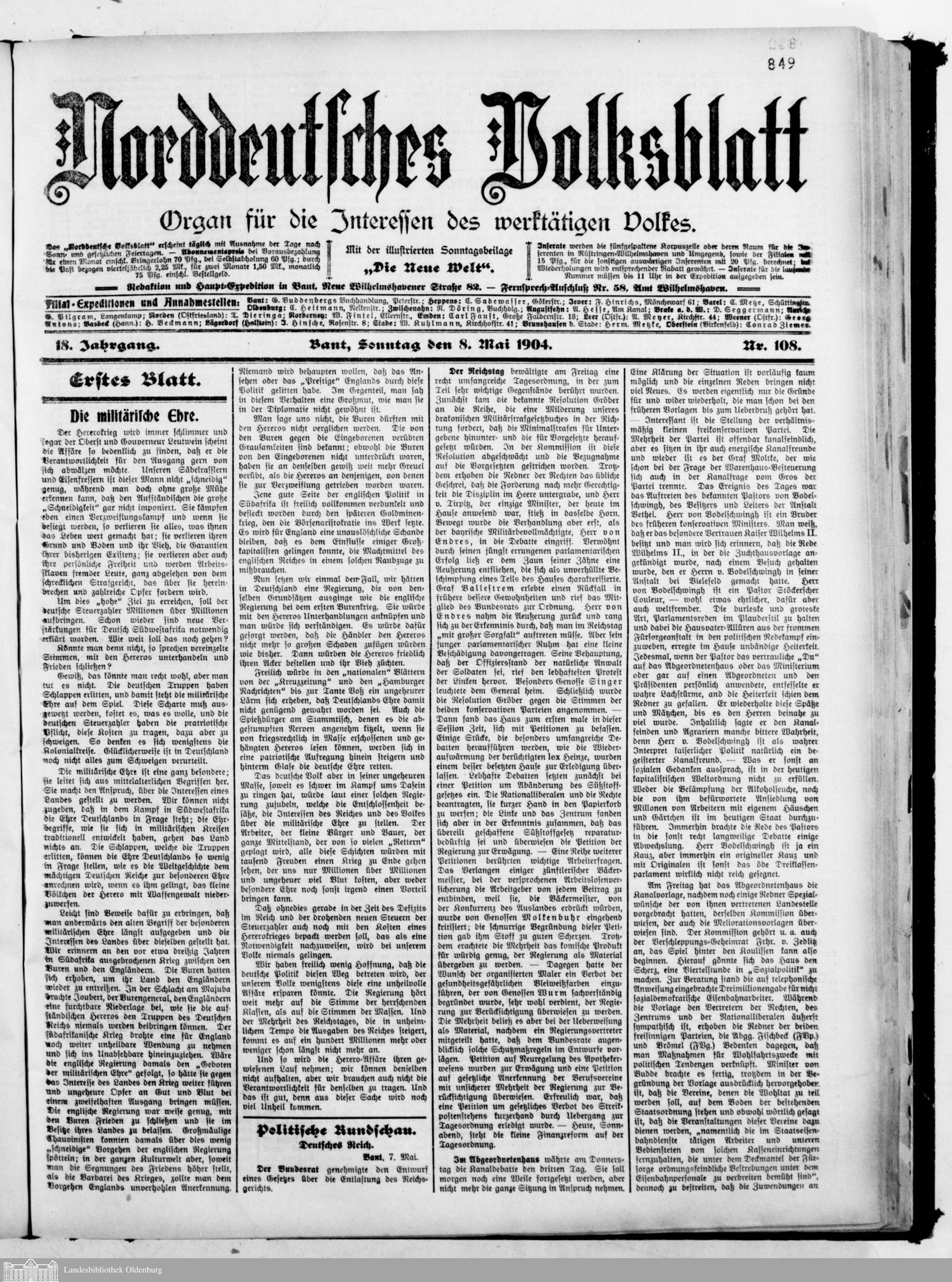 Norddeutsches Volksblatt. 1887-1918