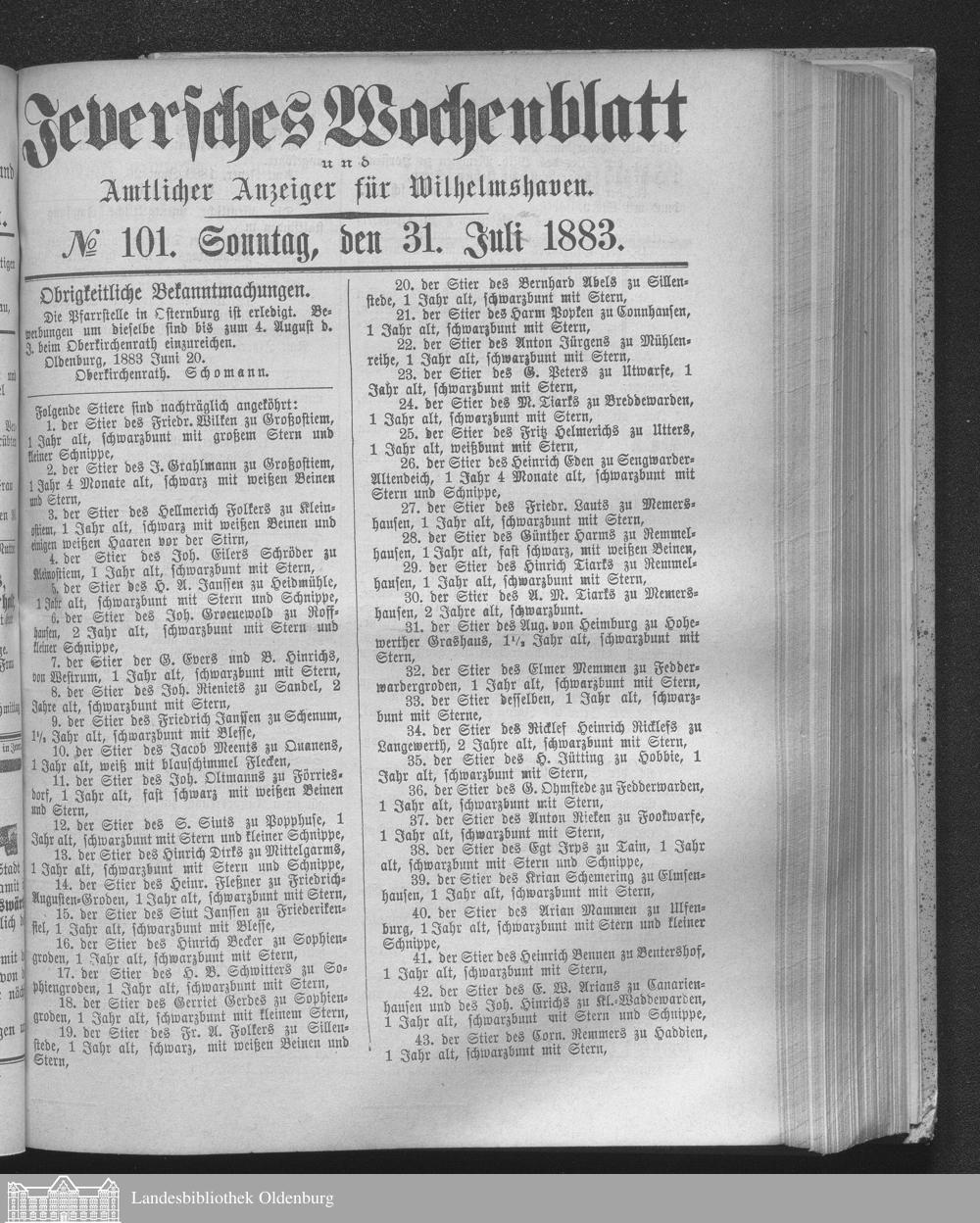 101 (1.7.1883) [laut Vorlage 31.7.1883]