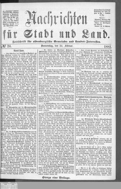 Nachrichten für Stadt und Land. 1866-1938