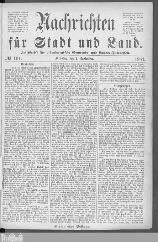 Nachrichten für Stadt und Land. 1866-1938