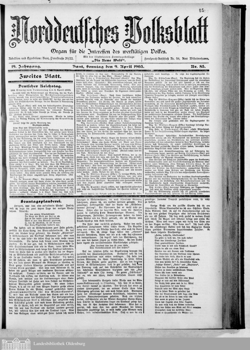 Norddeutsches Volksblatt. 1887-1918