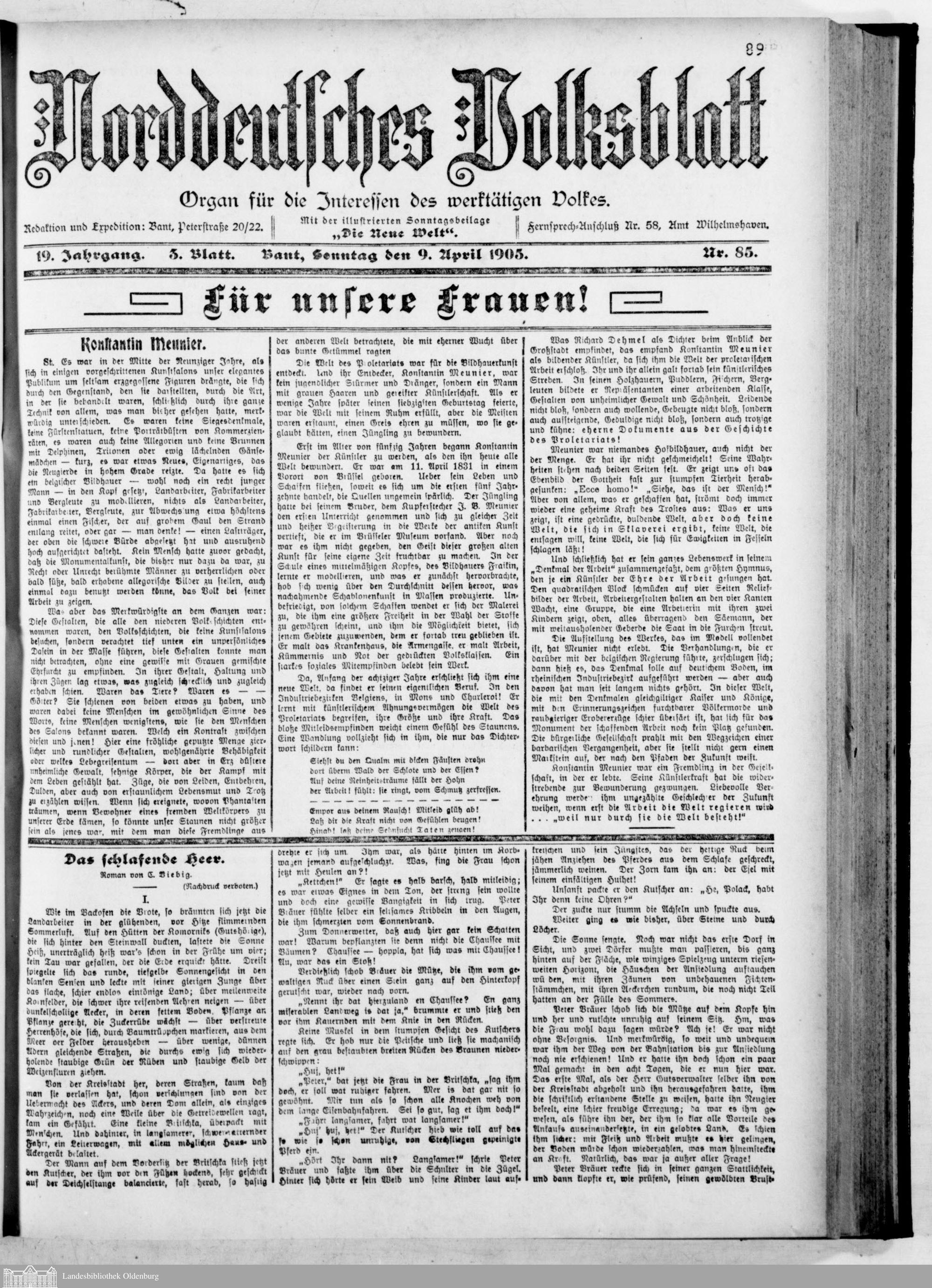 Norddeutsches Volksblatt. 1887-1918