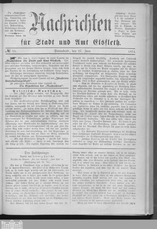 Nachrichten für Stadt und Amt Elsfleth. 1871-1933