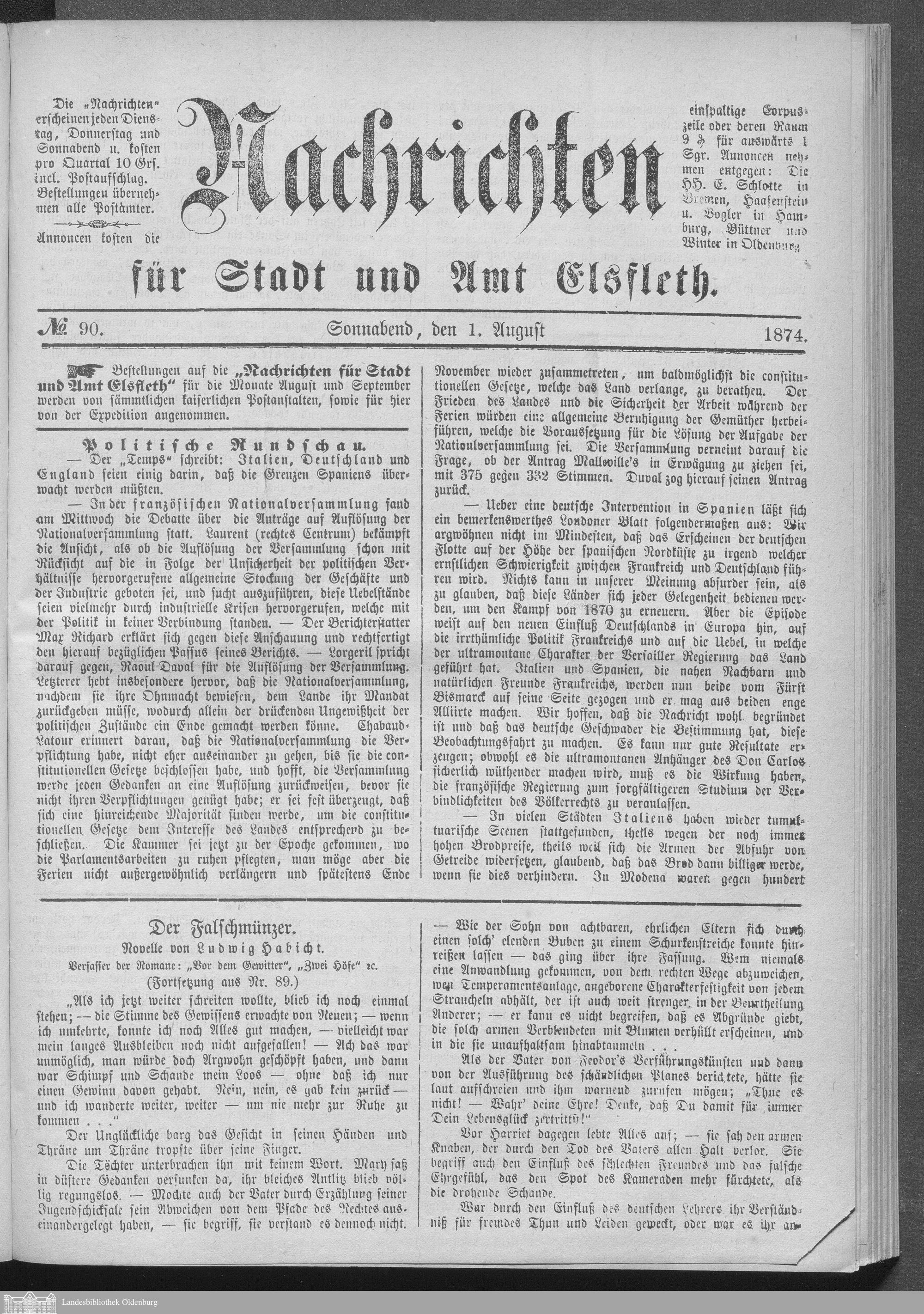 Nachrichten für Stadt und Amt Elsfleth. 1871-1933